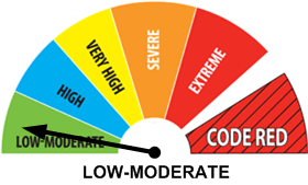 FIRE BEHAVIOUR: Fire Weather Index .. LOW (1) Initial Spread .......... LOW (1) Build Up Index ........ MODERATE (22) FUELS MOISTURE: Fine Fuel Moisture .. LOW (61) Duff Moisture ......... LOW (12) Drought ................ EXTREME (371) FIRE INTENSITY SELECTED VEGETATIONS: Grasslands ... LOW (0 kW) Scrublands ... MODERATE (299 kW) Forests ........ MODERATE (23 kW) |